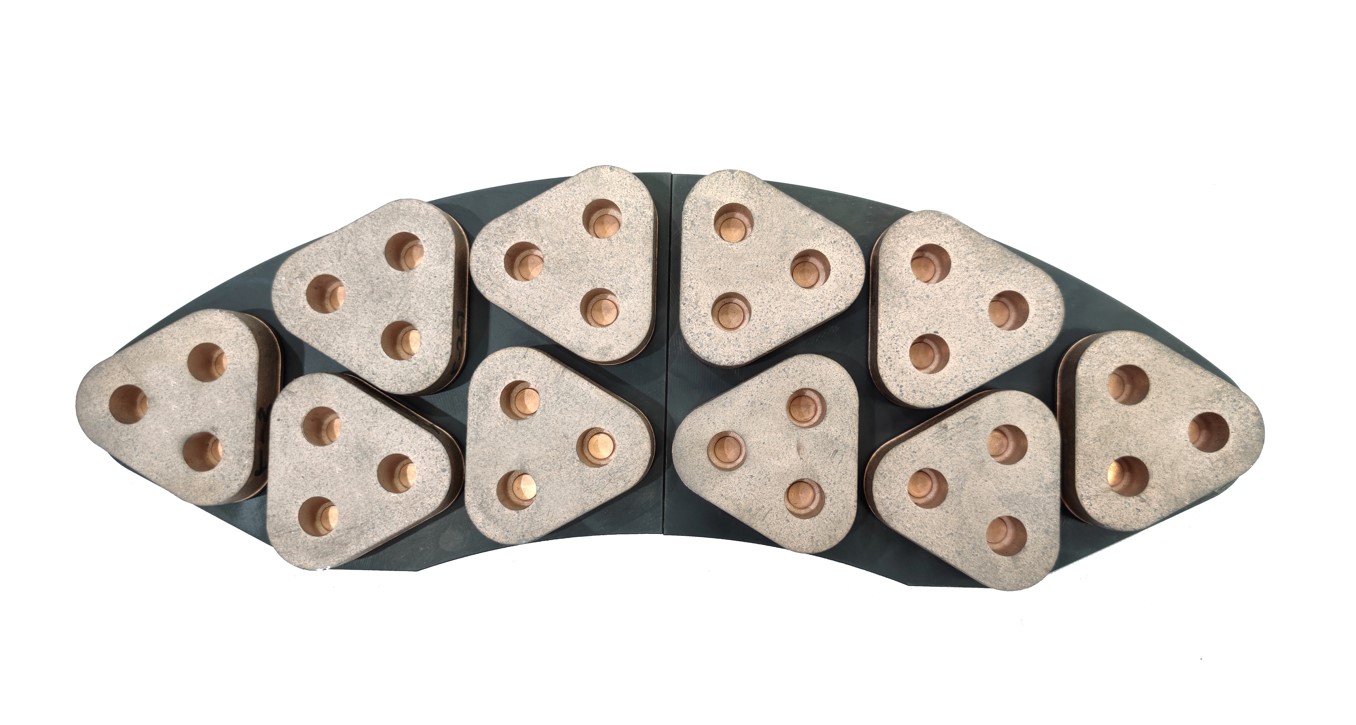 同時(shí),天宜上佳積極響應(yīng)國務(wù)院辦公廳轉(zhuǎn)發(fā)國家發(fā)展改革委、交通運(yùn)輸部、國家鐵路局、中國國家鐵路集團(tuán)有限公司《關(guān)于推動(dòng)都市圈市域(郊)鐵路加快發(fā)展的意見》(國辦函〔2020〕116號)的指導(dǎo):“在充分利用既有資源的基礎(chǔ)上,重點(diǎn)支持京津冀、粵港澳大灣區(qū)、長三角、成渝、長江中游等財(cái)力有支撐、客流有基礎(chǔ)、發(fā)展有需求的地區(qū)規(guī)劃建設(shè)都市圈市域(郊)鐵路,強(qiáng)化都市圈內(nèi)中心城市城區(qū)與周邊城鎮(zhèn)組團(tuán)便捷通勤,其他條件適宜地區(qū)有序推進(jìn)”。天宜上佳有針對性的為客戶量身打造時(shí)速120-200km市域快軌車型用粉末冶金閘片,其中自主研發(fā)生產(chǎn)的TS561粉末冶金閘片采用鉚接結(jié)構(gòu),三角形摩擦塊交錯(cuò)分布,主要應(yīng)用于我國城際、市域列車。