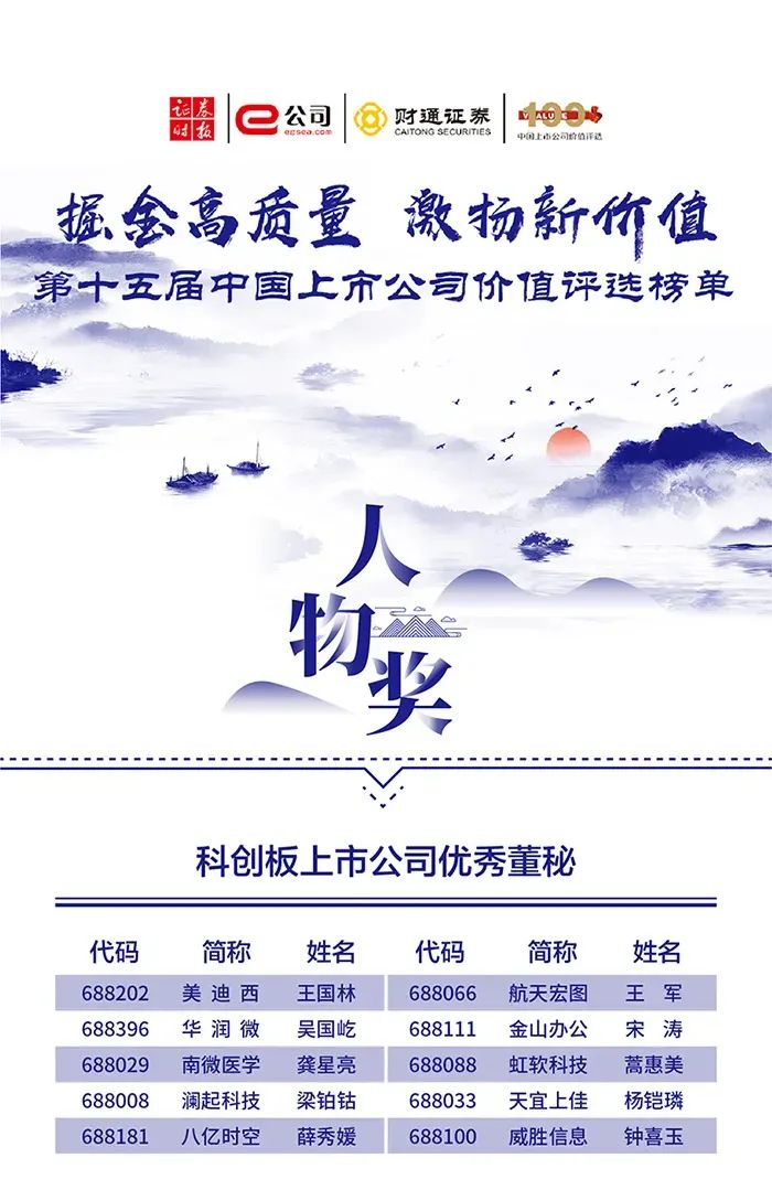 資本市場(chǎng)高質(zhì)量發(fā)展?jié)u入佳境,資金愈發(fā)以?xún)r(jià)值為錨,期望挖掘真正高含金量的標(biāo)的。在此背景下,2021年9月28日,由證券時(shí)報(bào)社主辦、財(cái)通證券特約協(xié)辦的“第十五屆中國(guó)上市公司價(jià)值評(píng)選”榜單揭曉。北京天宜上佳高新材料股份有限公司董事、董事會(huì)秘書(shū)、副總經(jīng)理?xiàng)铈z璘榮獲“科創(chuàng)板上市公司優(yōu)秀董秘”。