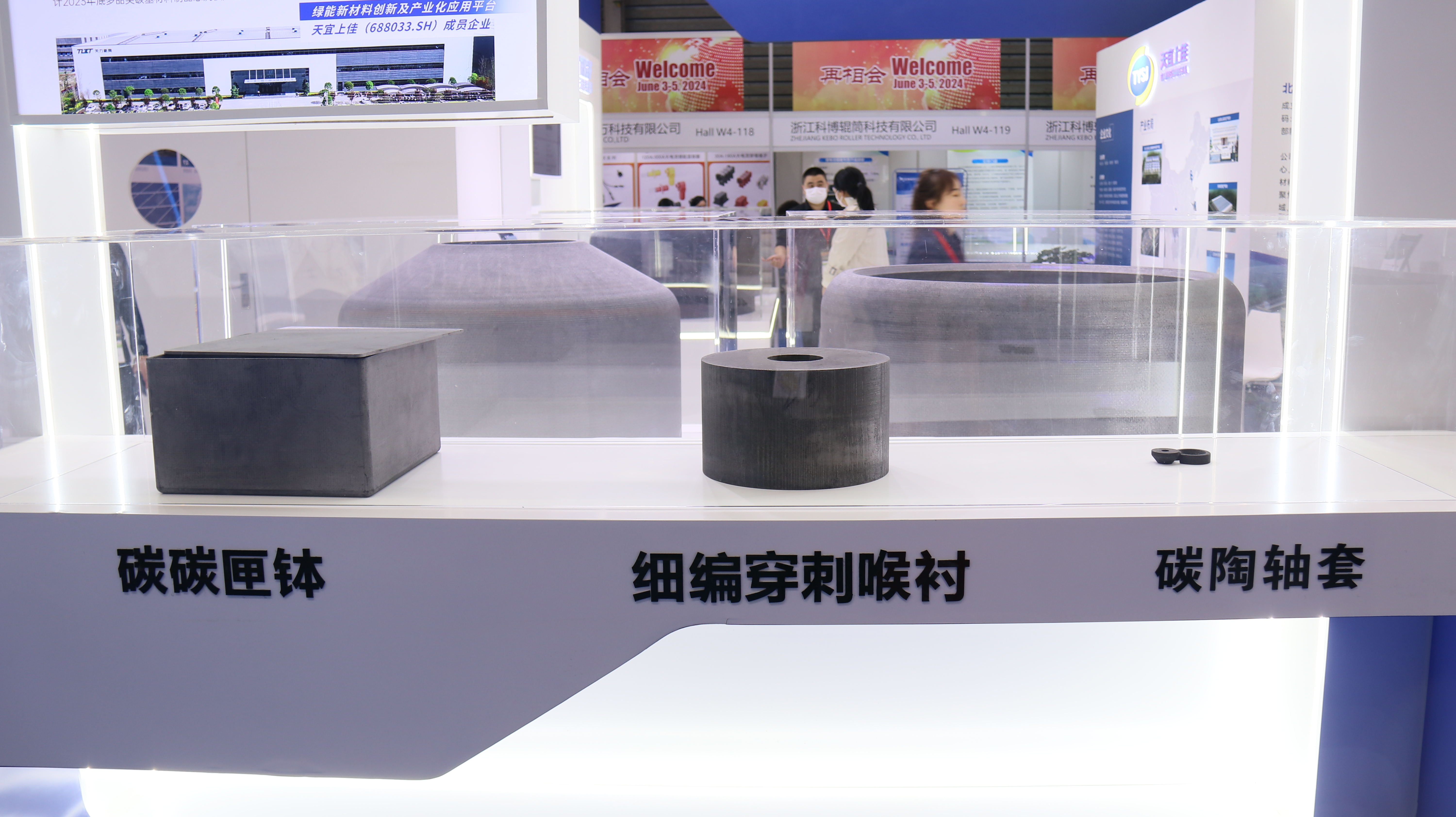 天宜上佳光伏業(yè)務(wù)以天力新陶、天啟光峰、新熠陽為主體,此次展會(huì)展出40寸碳碳堝幫/導(dǎo)流筒及預(yù)制體、33/42寸石英坩堝、碳碳匣缽、細(xì)編穿刺喉襯、碳陶軸套等產(chǎn)品。