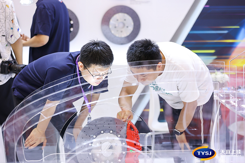 天宜上佳展出長纖維碳陶制動盤、長纖維涂層盤、短纖維碳陶制動盤、商用車、特種車輛碳陶制動盤及高鐵碳陶制動盤,同時展出碳陶盤配套半金屬復材襯片和合成襯片,天宜上佳定制化摩擦副解決方案全系列產(chǎn)品首次集體亮相,極具美感、質(zhì)感,在靜態(tài)中體驗極致動感,贏得眾多業(yè)內(nèi)專家、廠商和觀眾的青睞,圈粉無數(shù)。