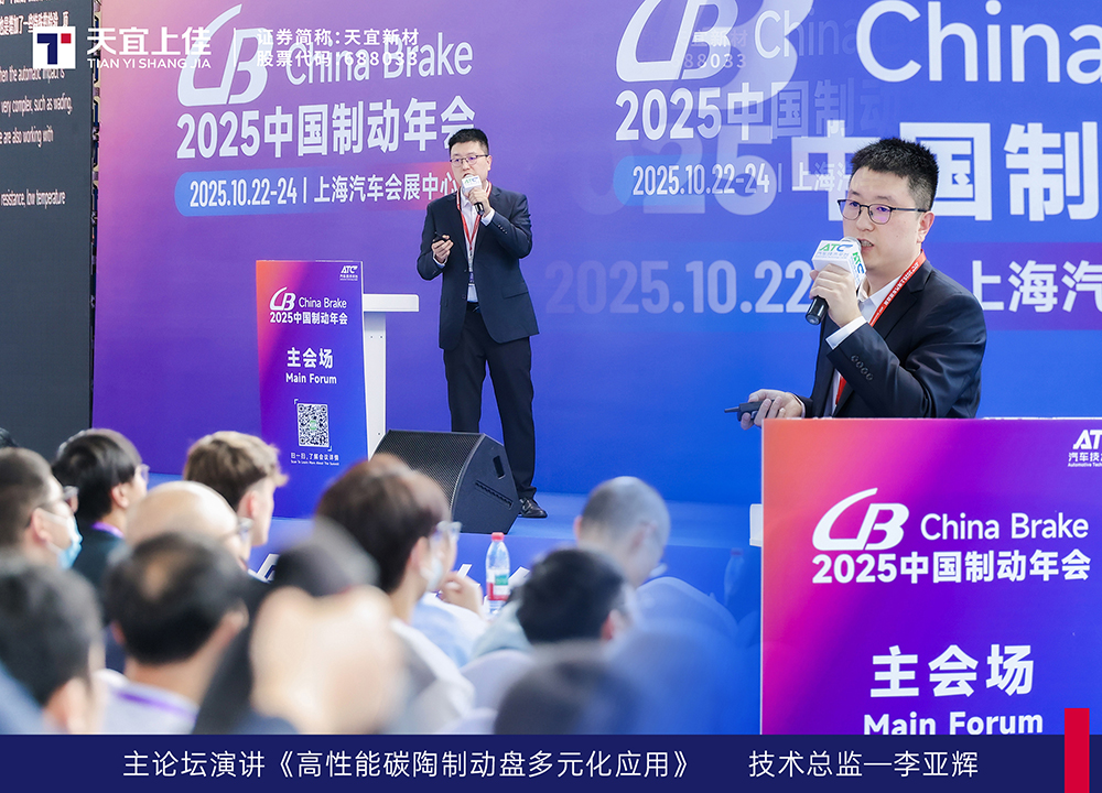 制動(dòng)主會(huì)場(chǎng)首日,天宜上佳全資子公司江油天啟智和科技有限公司技術(shù)總監(jiān)李亞輝以《高性能碳陶制動(dòng)盤多元化應(yīng)用》為題發(fā)表主題演講。演講中,李亞輝圍繞碳陶制動(dòng)技術(shù)在不同場(chǎng)景下的應(yīng)用痛點(diǎn)與解決思路,結(jié)合實(shí)際案例闡述了高性能碳陶制動(dòng)盤在新能源汽車、高端乘用車、商用車和特種車輛等領(lǐng)域的適配性與優(yōu)勢(shì),為行業(yè)探索碳陶制動(dòng)技術(shù)的多元化應(yīng)用提供了極具價(jià)值的參考方向,推動(dòng)技術(shù)交流與合作,贏得現(xiàn)場(chǎng)聽(tīng)眾的高度認(rèn)可。